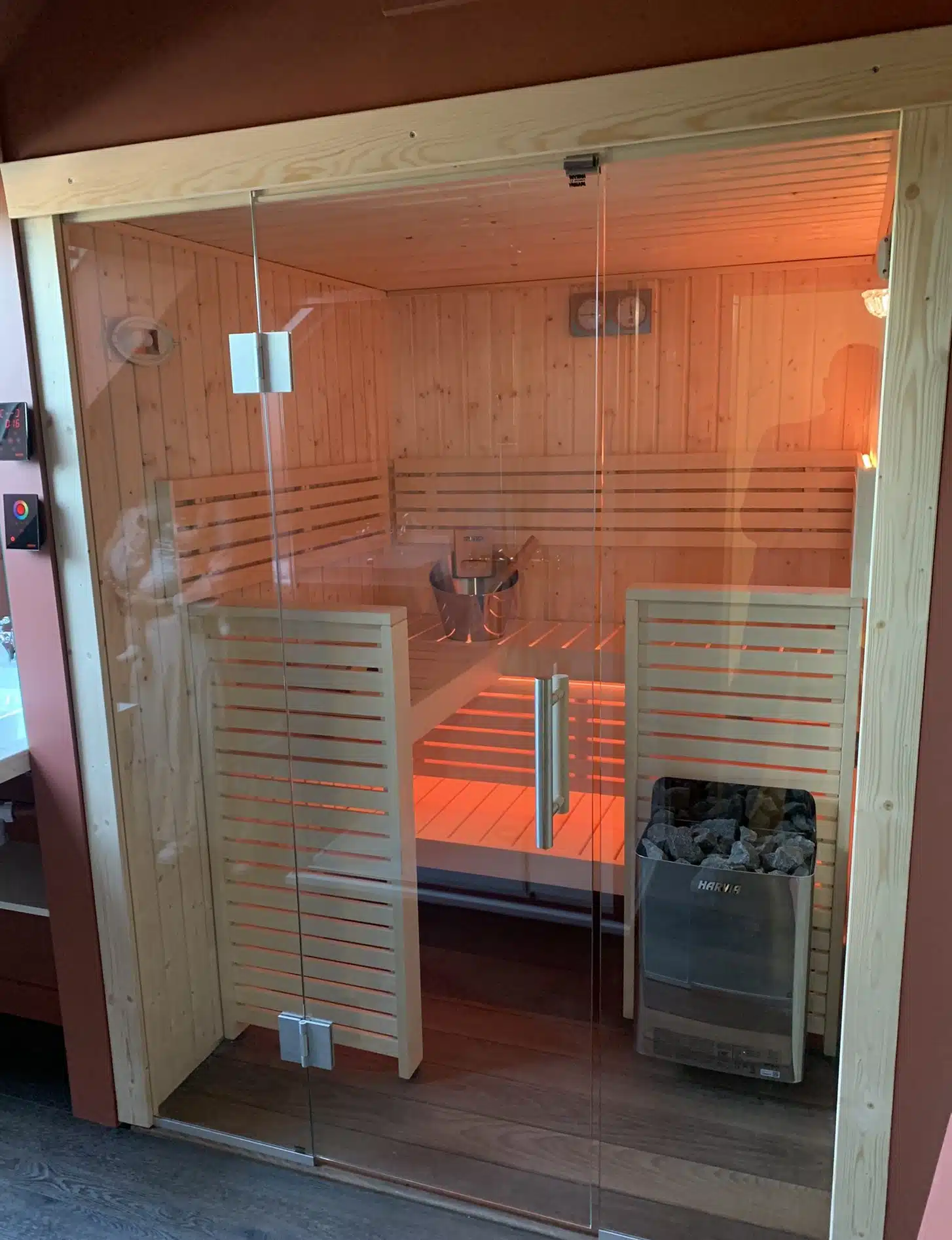 Connu pour ses bienfaits antistress, il est aussi réputé pour être une aide au sommeil mais aussi un remède aux problèmes de peau (acné, psoriasis, eczéma, urticaire). La chaleur dans un sauna reste sèche (entre 3% et 20% d'humidité) pour une température d'utilisation idéale de 80°c.