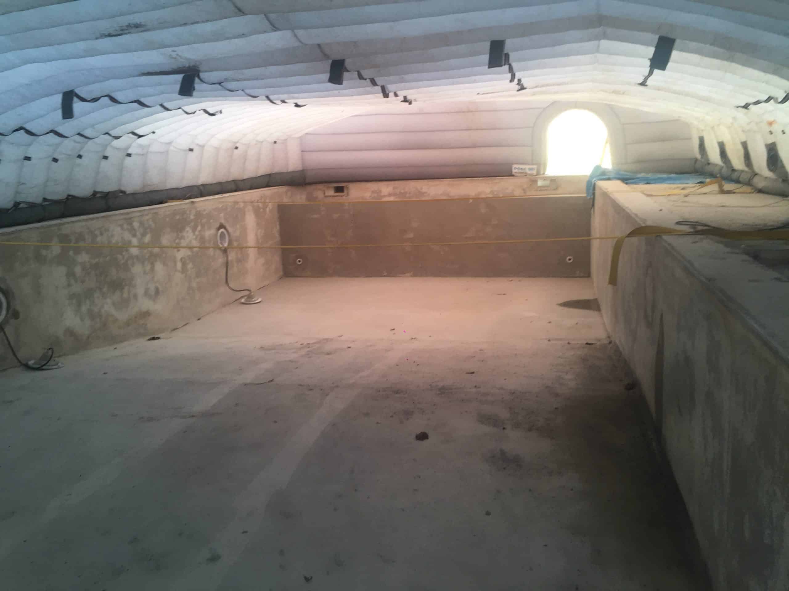 Grâce à notre abri de chantier gonflable, facilement transportable et d'installation aisée, nous sommes en mesure de réaliser nos travaux de finitions et de pose d'étanchéité (liners ou PVC armés) sur nos bassins quelque soit la météo.